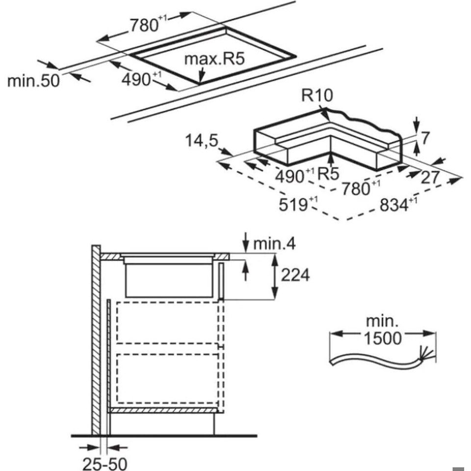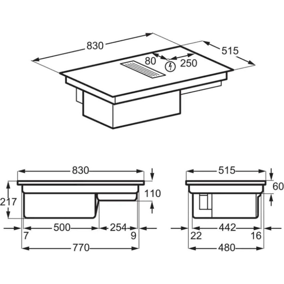 | Bauweise: | autark, flächenbündig, Einbaugerät, ohne Rahmen, mittig liegender Abzug |
