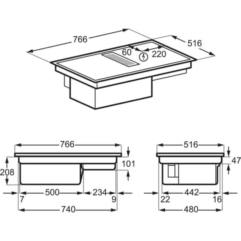 | Kochfeldtypen: | Kochfeld mit Dunstabzug, Induktionskochfeld |