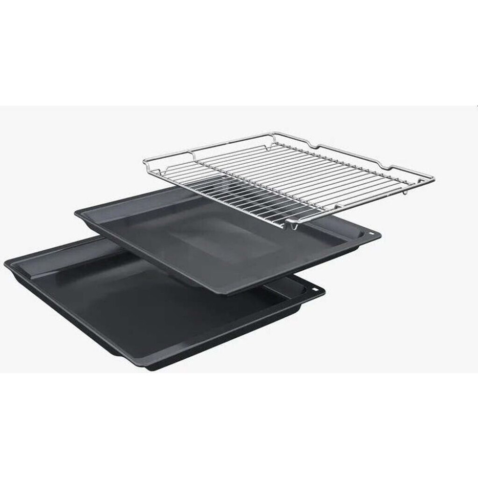 Für die Sicherheit in der Küche sorgen Funktionen wie eine Kindersicherung, Restwärmeanzeige und eine Sicherheitsabschaltung. Die gedämpfte Klapptür mit Türanschlag unten und der Lieferumfang, bestehend aus Backblech, Kombirost und Universalpfanne, runden das Gesamtpaket ab. Darüber hinaus ist der Bosch HBG7764B1 Smart-Home-fähig, unterstützt Sprachsteuerung und ist Alexa-kompatibel, was eine moderne und komfortable Bedienung ermöglicht.