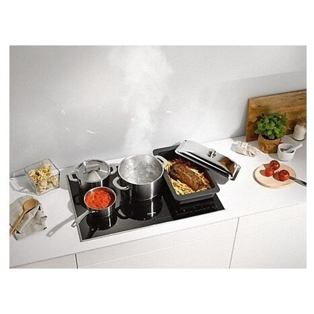 Das Kochfeld bietet flexible Einkreiskochzonen und Zweikreiskochzonen, um unterschiedlichen Topfgrößen gerecht zu werden.