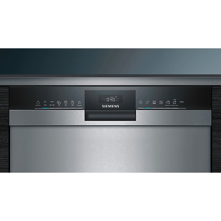 Der Unterbau-Geschirrspüler von Siemens bietet eine Auswahl an Spülprogrammen, darunter Vorspülen, 1h 65 °C und Automatikprogramme, ergänzt durch flexible Optionen wie halbe Beladung, ein Schnellspülprogramm und intensiveZone. Dank der Startzeitvorwahl und Reiniger-Automatik wird der Bedienkomfort zusätzlich erhöht. Steuern lässt sich das Gerät intuitiv über Tipptasten und die Restzeitanzeige informiert stets über den Programmfortschritt. Die Abmessungen betragen 81,5 cm Höhe, 59,8 cm Breite und 57,3 cm Tiefe, mit einer Kabellänge von 175 cm.
